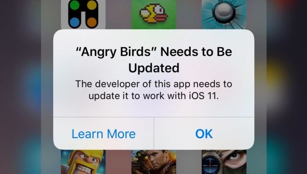 اینکه اپلیکیشن های ۳۲ بیتی دیگر روی IOS 11 کار نمی کنند ممکن است یک خبر بد باشد. علت این که اپ های ۳۲ بیتی جای خود را به اپ های ۶۴ بیتی داده اند حتما دلیلی فنی داشته اما نگران اپلیکیشن های خود نباشید چرا که تمامی آن ها تا آن جا که امکان داشته قابلیت به روز رسانی به نسخه جدید ۶۴ بیتی دارند پس کافی است نام آن ها را بدانید و آن ها را از طریق اپ استور بروز رسانی کنید حتی می توانید این اپ ها را به محض باز کردن در ای او اس ۱۱، بروز رسانی کنید چرا که یک صفحه پاپ آپ در این باره به شما کمک می کند که این کار را سریع تر انجام دهید که نمونه اش در عکس زیر آورده شده است: