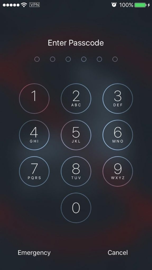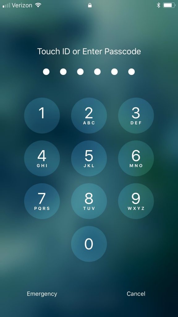 این نمایشی از صفحه ورود کد در ای او اس ۱۰ می باشد و بعدی نیز برای IOS 11 معرفی شده است: