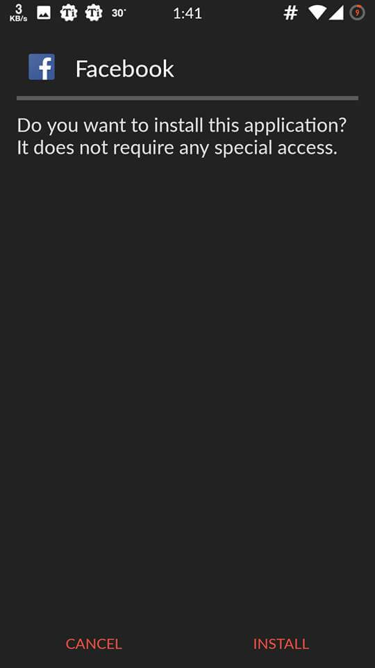 و بعد از دانلود مطابق شات بالا آن را نصب کنید. وقتی که اپلیکیشن را نصب کردید با صفحه ای مشابه صفحه فیس بوک و با ترکیب رنگی آن مشاهده خواهید کرد: