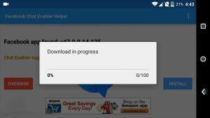 Facebook Chat Enabler را دانلود کرده و نصب کنید و همچون روال یاد شده، پکیج ۱ مگابایتی که این برنامه ارائه می دهد را دانلود کنید.