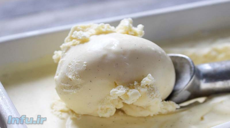 شکر ، تخم مرغ و وانیل را مخلوط کرده و آنقدر هم بزنید تا سفید رنگ شود و حباب بزند . شیر را جوشانده و به مایه فوق اضافه کنید و خوب هم بزنید مایه را در ظرف روی ریخته و بگذارید خنک شود . سپس آن را در فریزر بگذارید. ۱ ساعت بعد آن را درآورده و هخم بزنید . این کار را ۳ تا ۴ بار تکرار کنید تا بستنی یخ نزند.