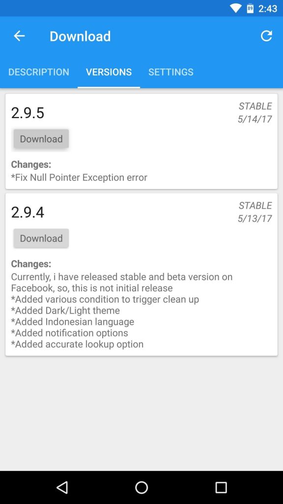 در صفحه نتایج همانطور که مشاهده می کنید این برنامه قابل نمایش است. روی ان ضربه بزنید تا بتوانید ورژن های مختلف آن را هم مشاهده کنید و آن اپ که مورد نظرتان است را دانلود کنید. برای این منظور روی دکمه دانلود کلیک کنید.
