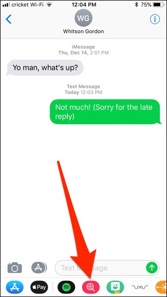 برای شروع کار کافی است که وارد آیفون خود شوید و اپلیکیشن مسیج خود را باز کنید و مخاطبی که می خواهید برایش فایل GIF ارسال کنید را پیدا کنید: