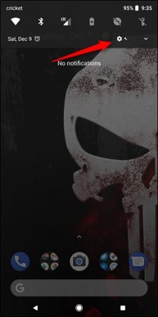 برای پیدا کردن آمار ذخیرهسازی در دستگاههای اندرویدی مانند Nexus یا Pixel، ابتدا نوار نوتیفیکیشن را پایین بیاورید و روی نماد دایره ضربه بزنید.