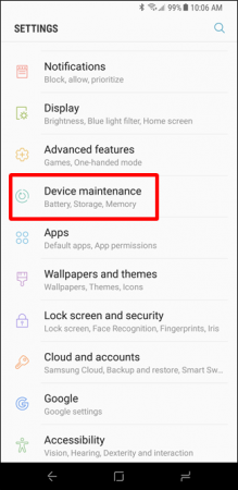 حال در منوی باز شده روی Device Maintenance، ضربه بزنید.