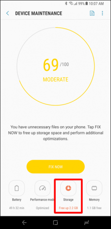 این گزینه بلافاصله شروع به اجرای چکلیست تعمیر و نگهداری دستگاه میکند، اما شما میتوانید بهراحتی آن را نادیده بگیرید و فقط روی گزینه Storage در پایین صفحه ضربه بزنید.