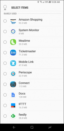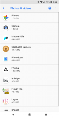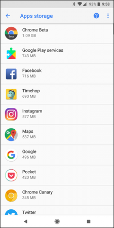 شما همچنین میتوانید بر روی هر ورودی ضربه بزنید تا ببیند هر آیتم چه مقدار از فضای حافظه را اشغال کرده است. خبر بد این است که در اینجا گزینههای مرتبسازی وجود ندارد، بنابراین نمیتوانید لیست برنامههای خود را مرتب کنید تا ببینید کدام آیتم بزرگتر از سایرین است و تنها باید به پایین صفحه بروید و برنامههایی که حجم زیادی از حافظه را اشغال کردهاند انتخاب کنید.