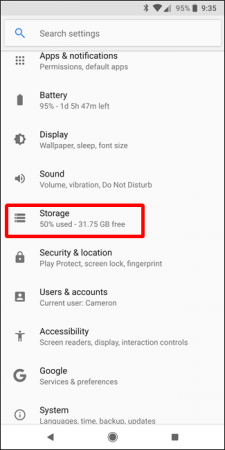 از آنجا، به پایین صفحه بروید و روی Storage ضربه بزنید.