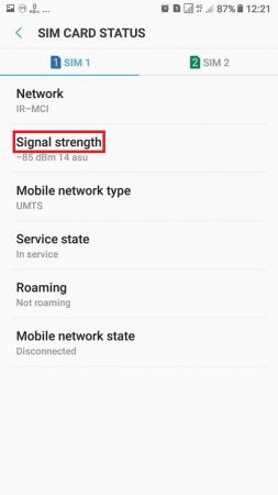 پس از انتخاب سیمکارت قدرت سیگنال آن به شما نمایش داده میشود.