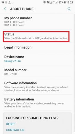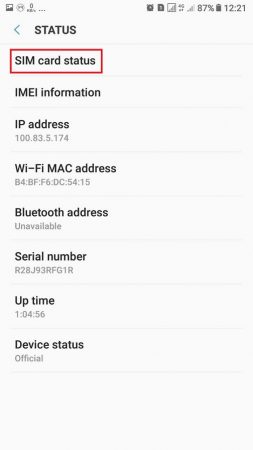 گام دوم: در این صفحه به دنبال گزینه Network و یا Status باشید که در آن اطلاعات فنی دستگاه شما نمایش داده میشود.