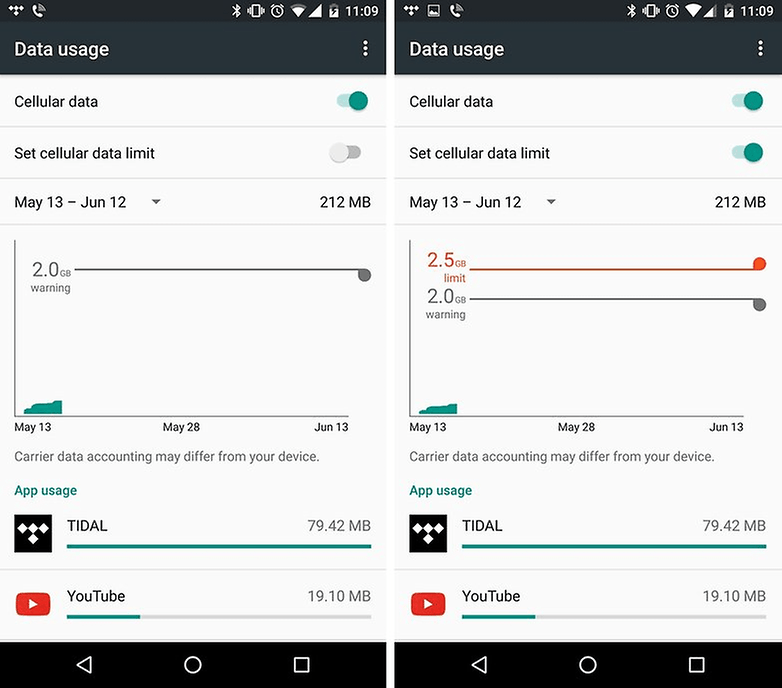 مشخص کردن محدودیت مصرف در تنظیمات اندروید