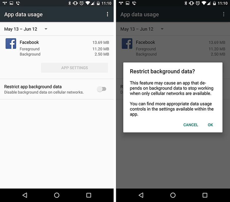 در همین قسمت شما می توانید لیست اپلیکیشن ها و میزان مصرف هر یک از آن ها را به طور جداگانه مشاهده کنید. کافی است بر روی یکی از آن ها کلیک نمایید تا میزان مصرف اینترنت اپلیکیشن مورد نظر در پس زمینه (background) و پیش زمینه (foreground) به شما نشان داده شود. اپلیکیشن هایی وجود دارند که به طور مخفیانه حجم دیتای شما را در پس زمینه مصرف می کنند. اگر با این کار موافق نیستید می توانید با فعال کردن گزینه Restrict app background data ، مصرف اینترنت در پس زمینه را برای اپلیکیشن مورد نظر محدود نمایید. مراقب باشید! زیرا این کار می تواند سبب از کار افتادن برخی از اپلیکیشن ها شود. (مخصوصا اپلیکیشن های سیستمی و اپلیکیشن های گوگل)