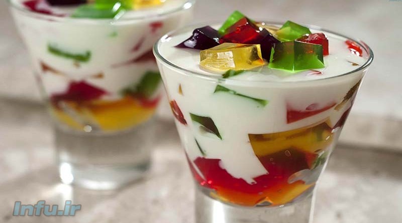 همانطور که می دانید برای درست کردن ژله معمولی باید ژله را در یک لیوان آب داغ حل کرده و سپس آب سرد را به آن اضافه کنیم. برای تهیه ژله بستنی کافی است پس از حل کردن ژله در آب داغ، به جای آب سرد به مقدار لازم بستنی وانیلی به آن اضافه کنید. تنها کافی است بستنی را حدود یک ساعت در دمای اتاق قرار دهید تا کمی باز شود. سپس مخلوط ژله بستنی را درون ظرف های مورد نظر ریخته و داخل یخچال قرار دهید تا بگیرد.