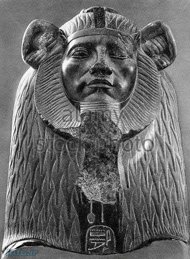 شناخته شد. آنچه بسیار غیرمعمول است، تصویر این فرعون است که در قالب یک مجسمه مرموز کشیده شده، و یال شیر، با ماهی تزئین شده .
