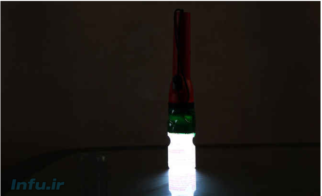 نکته : مواظب باشید آب درون بطری به داخل چراغ قوه وارد نشود . در صورتی که چراغ شما ضد آب نباشد ممکن است آسیب ببیند