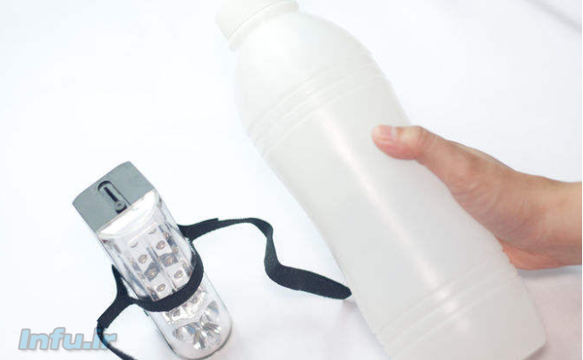 روش دوم – ساخت لامپ مطالعه قابل حمل توسط یک بطری شیر و چراغ قوه :