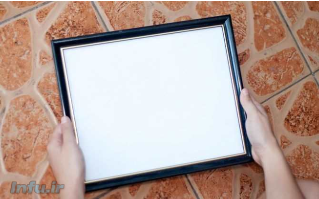 - تهیه قاب عکس با سایز مناسب که بستگی به ابعاد شئ دارد که قرار است نور به آن تابیده شود و جدا کردن قسمت مقوایی پشت قاب