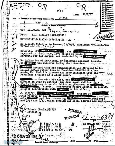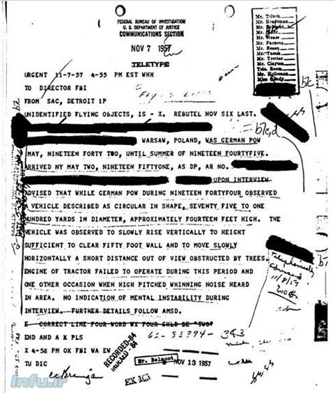 حوزه عملکرد اف. بی. آی. درون خاک خود امریکاست و تا زمانی که به امنیت داخلی امریکا مربوط نباشد در امور خارجی دخالت نمی کند [خواننده اف. بی. آی یا پلیس فدرال را نباید با سازمان سیا اشتباه بگیرد. چون سیا مسئول امور امنیت خارجی است]. دلیلی که این گزارش برای سالیان مدیدی بایگانی شده است چه می تواند باشد جز این که بر امنیت داخلی آمریکا موثر بوده است؟ آیا با بشقاب پرنده های مشاهده شده در تگزاس که قادر بودند موتور وسایل نقلیه را از کار بیاندازند، ربطی دارد؟