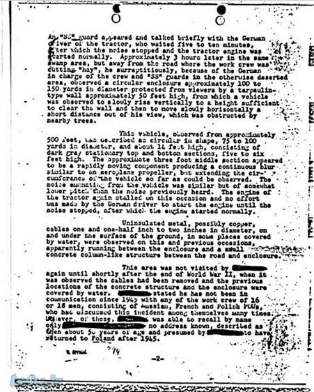 اولین گزارشی که به دست ما می رسد به خاطر زحمات پژوهشگری به نام هورست شاپمن (Schuppmann) می باشد. یکی از دوستان شاپمن با یک شاهد بشقاب پرنده آلمانی در زمان جنگ جهانی دوم مصاحبه نمود. این گزارش ابتدا در ۱۹۹۸ در کتاب کارل هینز زونک (Zunneck) منتشر شد (۳).