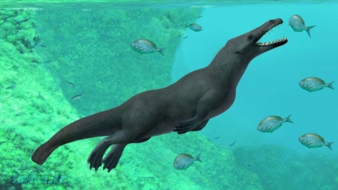 فسیل شناسان معتقدند که این پستاندار دریایی با جثه ای چهار متری هم امکان شنا و هم توانایی راه رفتن در خشکی را داشته است.
