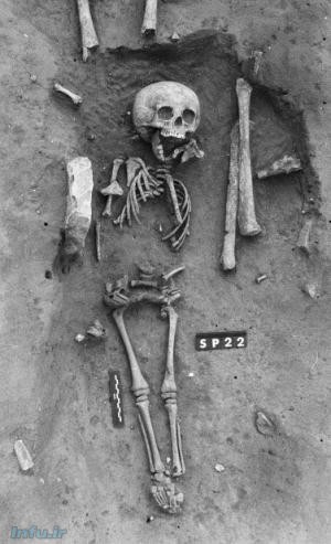 در مقابل، گروه ریوولات نحوه دفن آن کودک مبتلا به سندروم داون را بررسی کرد؛ امری که بررسی آن در خصوص سایر موارد کهن این عارضه، مقدور نبود. کودک از پشت، و در جهت شرقی-غربی در گور قرار گرفته، بهطوریکه سرش به سمت غرب قرار دارد – مثل سایر مردگان این قبرستان.