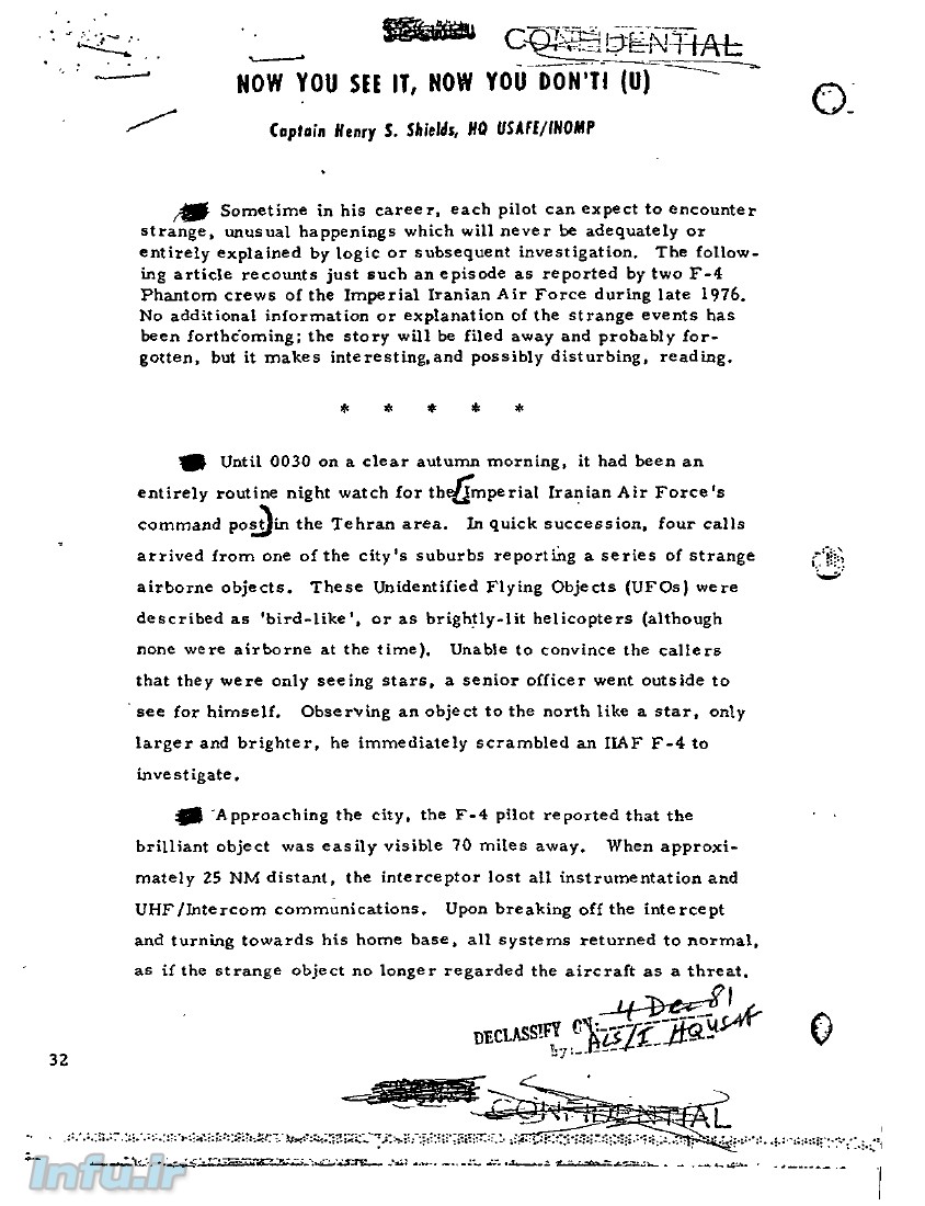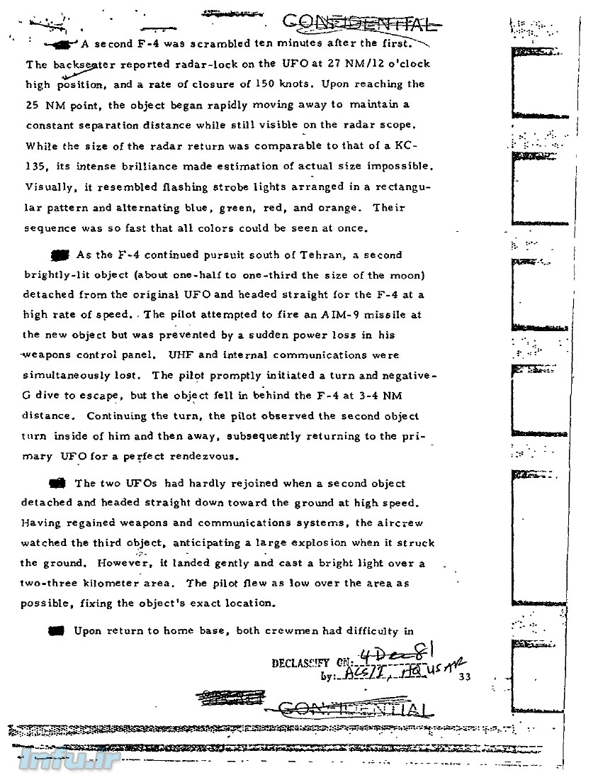 اسناد مربوط به گزارش DIA از حادثه یوفو در تهران :