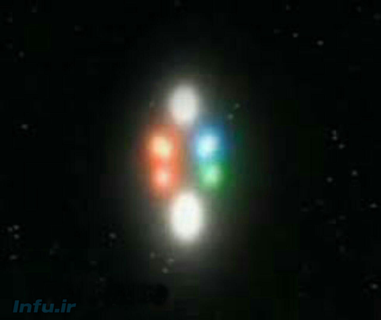 تشخيص اندازه دقيق شي نوراني به دليل نور زيادي كه از اين شي ساطع ميشود دشوار است . رنگهاي اين شي نوراني به صورت متناوب ميان رنگهاي آبي , سبز , قرمز و نارنجي متغير و تغيير رنگ آن منظم است و به سرعت رنگها تغيير ميكنند . فاصله تغيير رنگها خيلي كم و كمتر از يك ثانيه بيشتر ميان تغيير رنگها فاصله نیست..