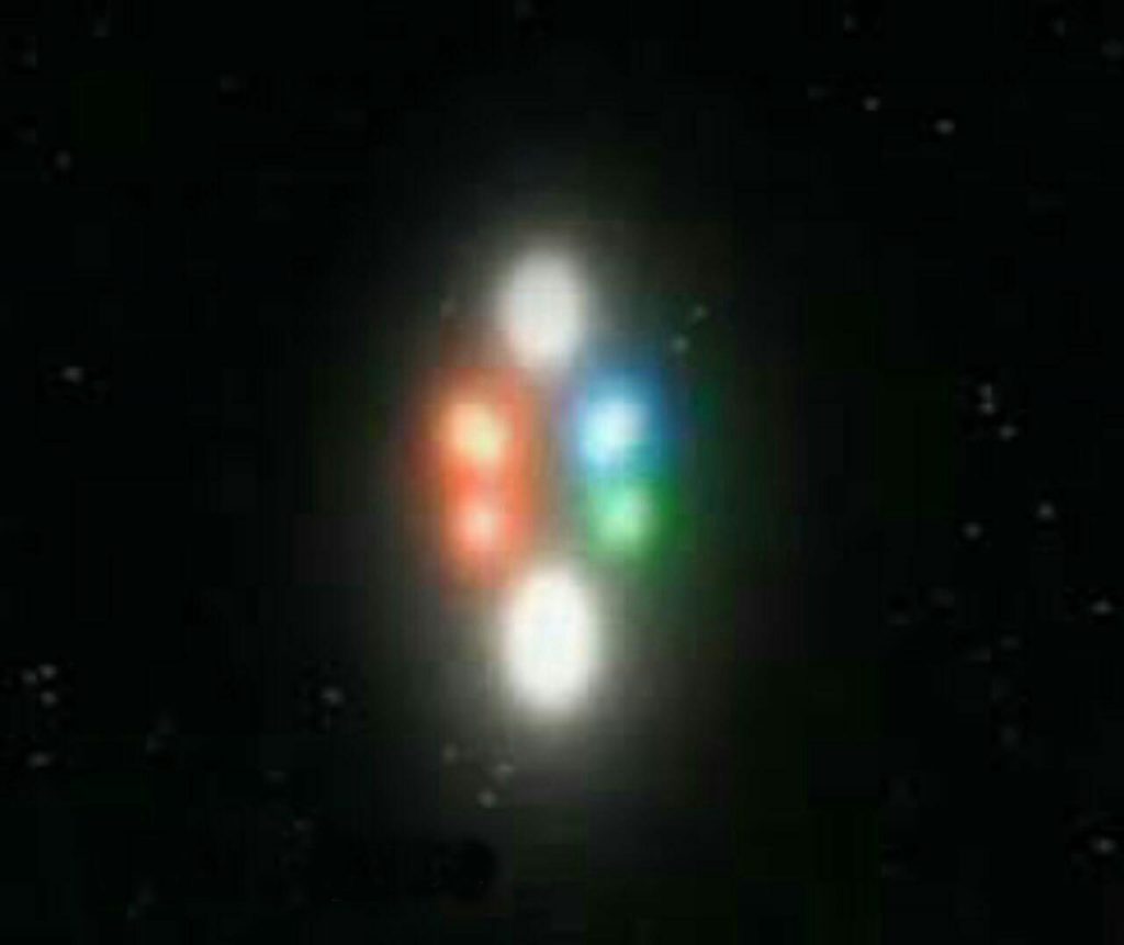 تشخیص اندازه دقیق شی نورانی به دلیل نور زیادی که از این شی ساطع میشود دشوار است . رنگهای این شی نورانی به صورت متناوب میان رنگهای آبی , سبز , قرمز و نارنجی متغیر و تغییر رنگ آن منظم است و به سرعت رنگها تغییر میکنند . فاصله تغییر رنگها خیلی کم و کمتر از یک ثانیه بیشتر میان تغییر رنگها فاصله نیست..