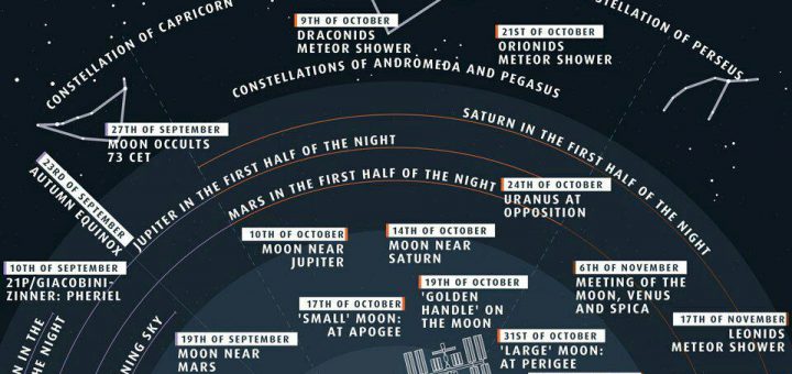 در فصل کنونی چه چیزی در آسمان شب می بینید؟ این گرافیک برجسته چند نقطۀ مهم را در نیمکره شمالی زمین نشان می دهد