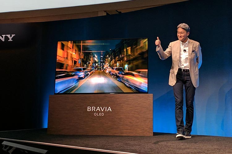 کاز هیرای در حال معرفی تلویزیون اولد براویای سونی در جریان نمایشگاه CES 2017