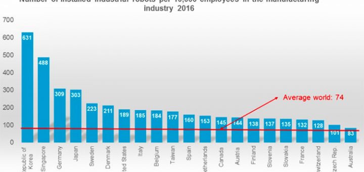 فدراسیون بینالمللی رباتیک نام ۱۰ کشوری که بیشترین استفاده را از رباتهای صنعتی میبرند اعلام کردهاست.