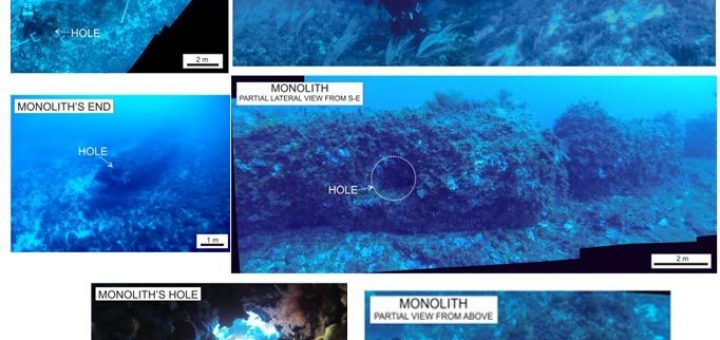 یک ستون ۱۵۵ تنی از سنگ آهک با سوراخ هایی که توسط دستگاه ایجاد شده است گواه فوق العاده ای بر حضور