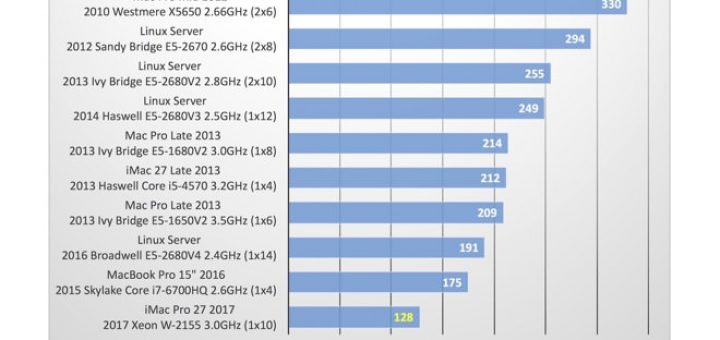 در تستهای بنچمارکی که از نسخهی ۱۰ هستهای آی مک پرو گرفته شد، این دستگاه توانست در انجام وظایف فشرده پیشرفت قابل توجهی نسبت ب