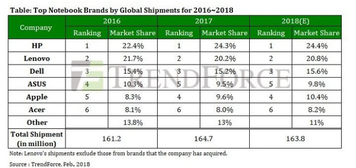 عرضهی جهانی لپتاپ طی سال ۲۰۱۷ میلادی با رشدی بیش از پیشبینیها همراه شده که دلیل عمدهی آن افزایش