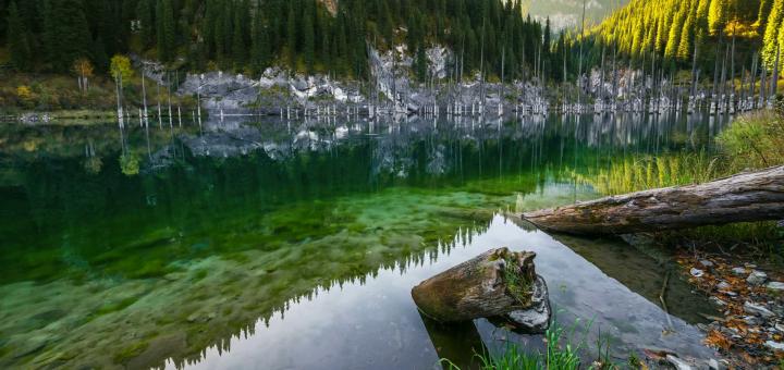 یکی از مناظر شگفت انگیز طبیعی در نزدیکی آلماتی در شرق قزاقستان، «دریاچه کایندی» (Lake Kaindy)است که به خاطر درختهای